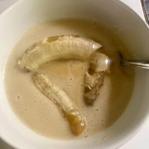 今回は甘めのレシピでパウンドケーキに近いですが、バナナの甘味を生かした素朴な味にしたい方は砂糖を分量の半分にして下さい。バナナはしっかり黒くなった完熟を使用しました。