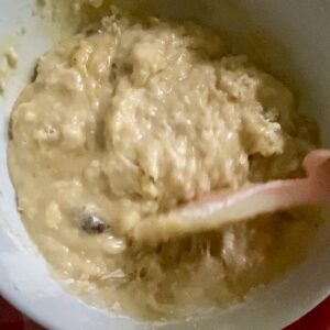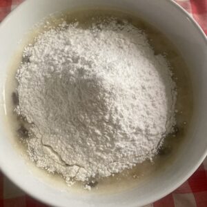 2、酵母元種を入れて全体が液状になるまで混ぜます。