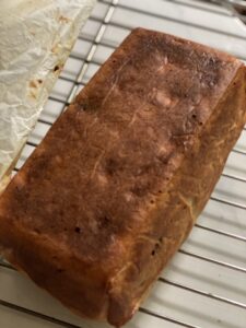 スライスして熱いうちに食べても、冷蔵庫で冷やして食べても美味しいです。今回は強力粉だけの酵母で、殆ど酸味の無い状態のものを使用したため、バナナブレッドにしても天然酵母特有の酸味は感じられませんでした。